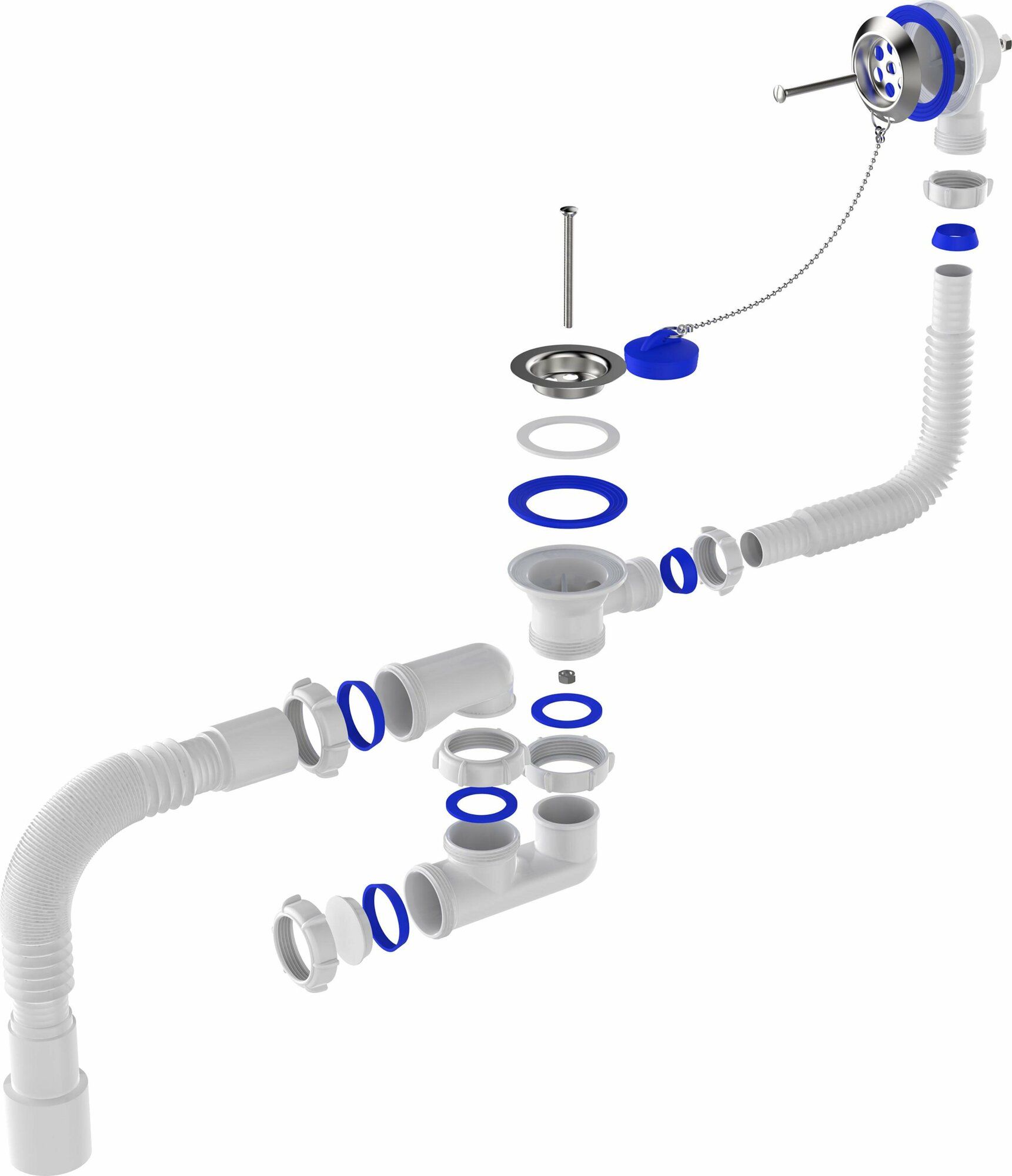 Сифон для ванны, регулируемый с выпуском и переливом с гофрированной трубой 40х50, Aquant. V255-25-MR интересное: