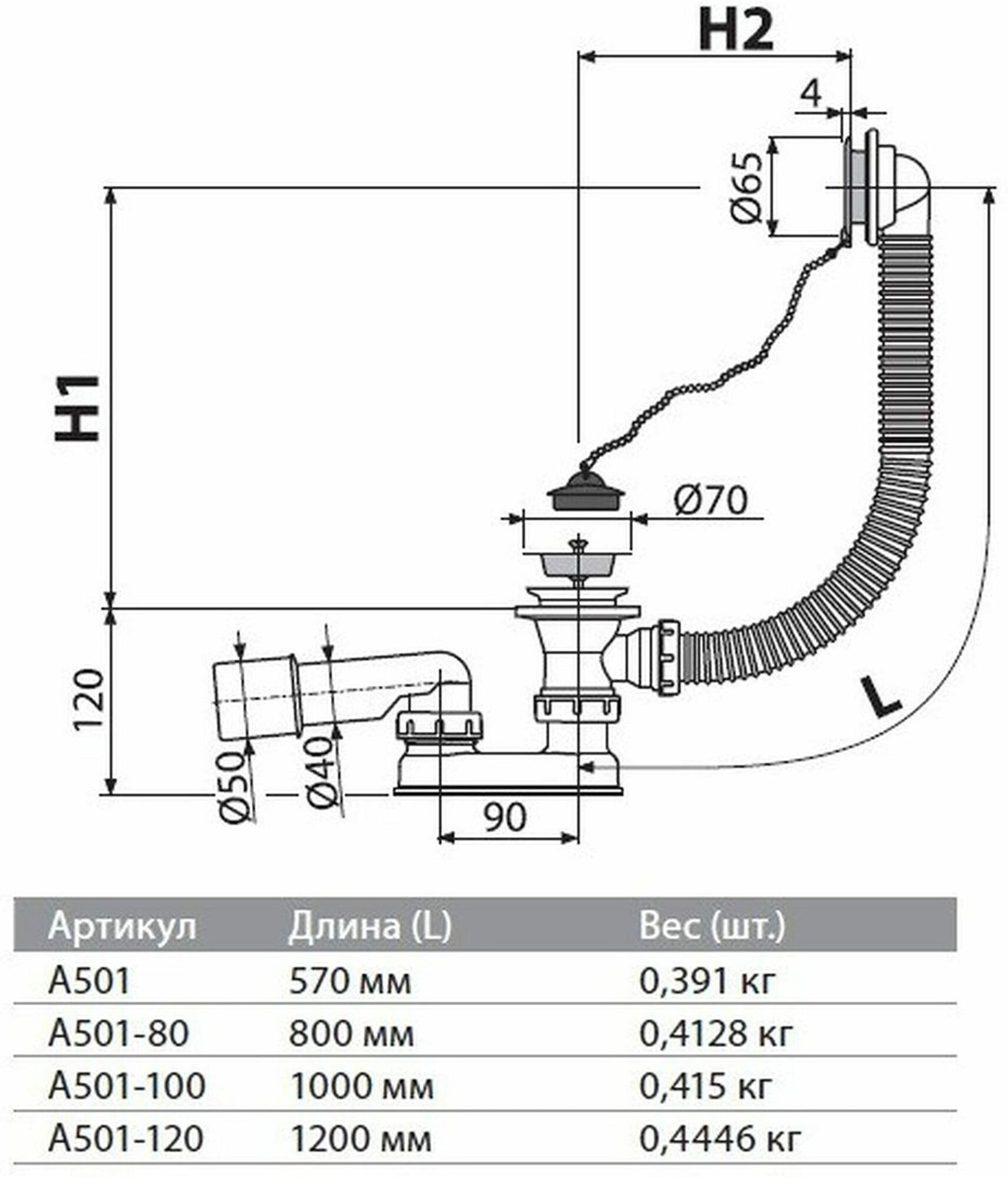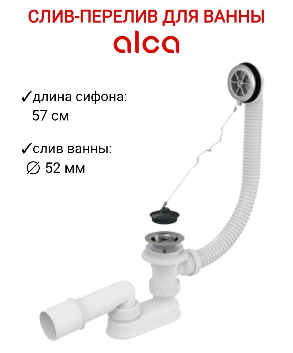 Сифон для ванны, хром AlcaPlast A501 интересное: