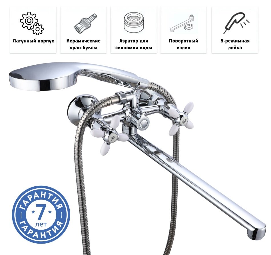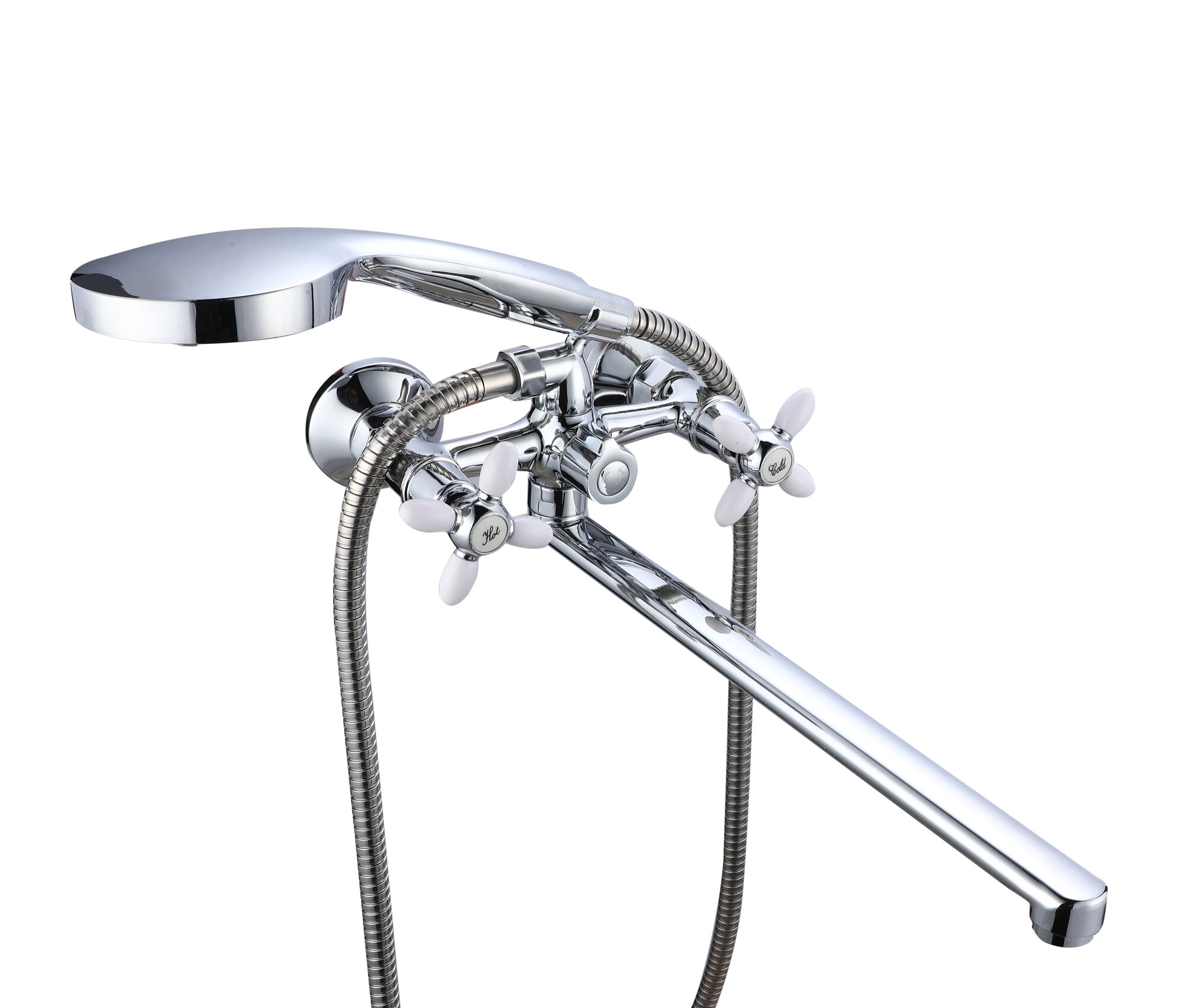 ESKO Line. Смеситель для ванны с душем двухвентильный с длинным поворотным изливом 320мм / латунный интересное:
