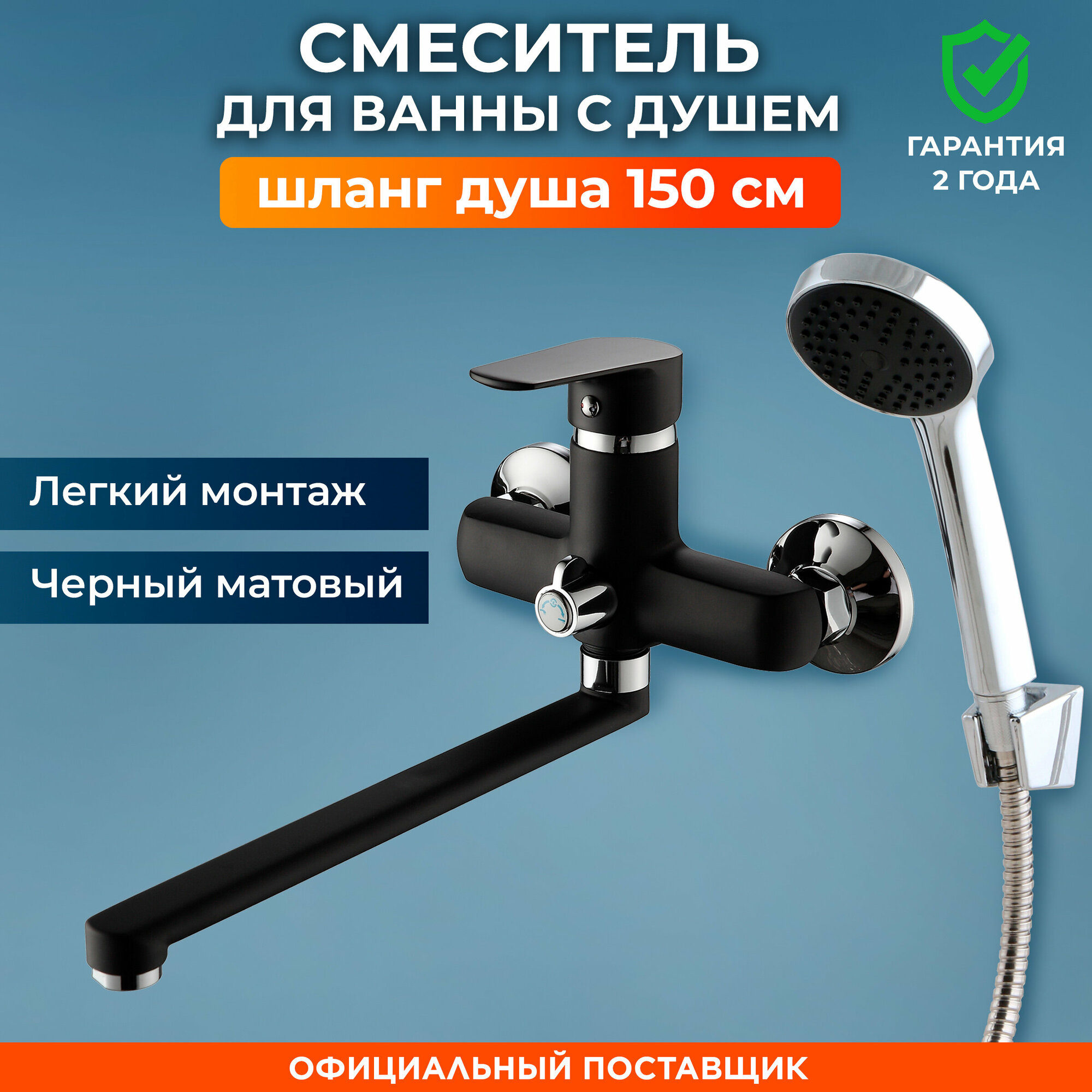 Смеситель для ванны с душем черный с длинным изливом однорычажный NNF-0028 интересное: