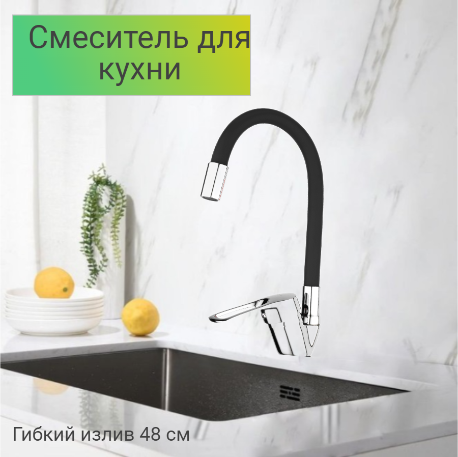 СохранитьСмеситель для кухни с гибким изливом/ для кухонной мойки/ кран для кухни TER41-305BL, цвет: черный. Без гибкой подводки. интересное: