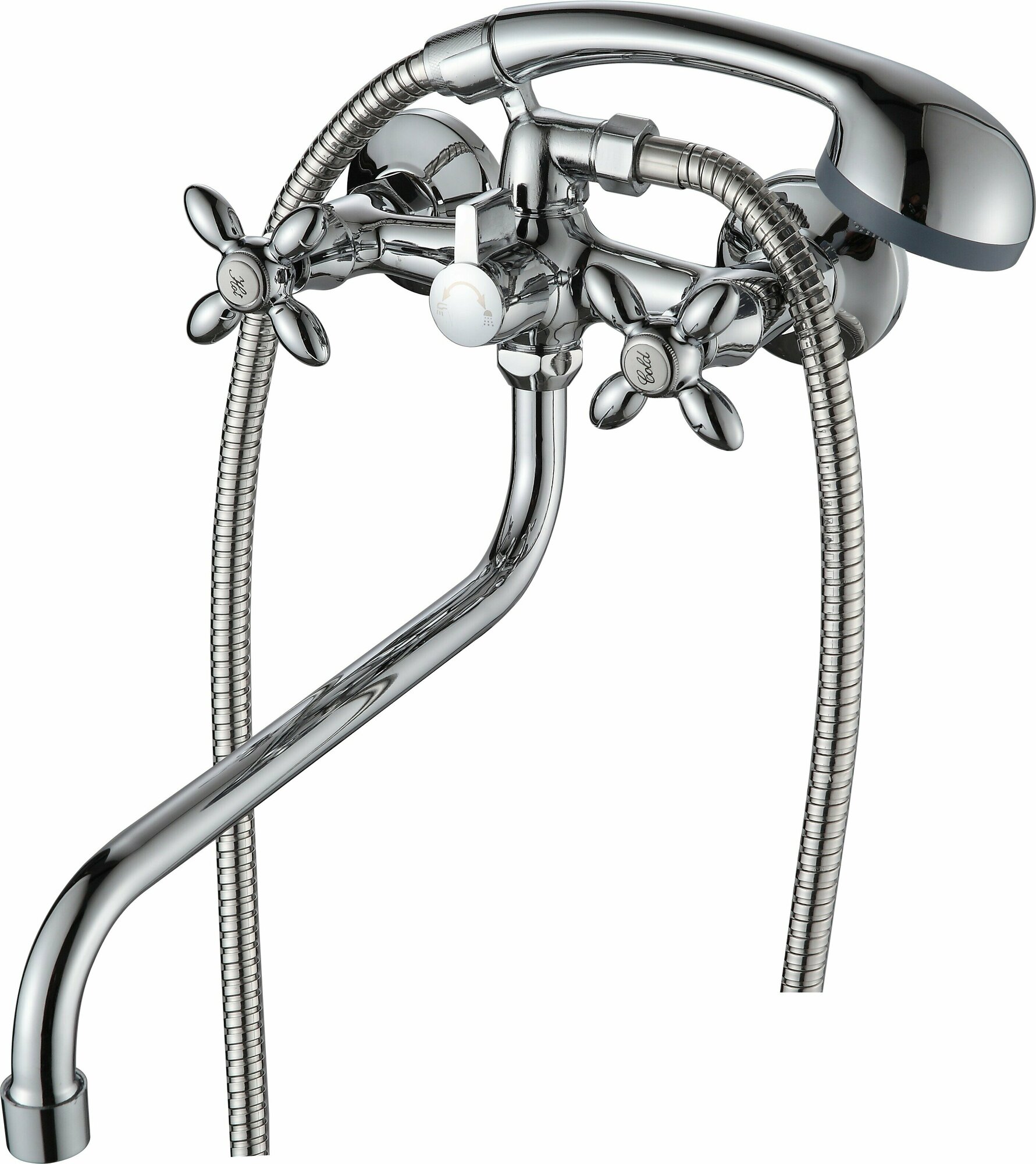 Купить Смеситель для ванны с душем с длинным поворотным изливом NNF-0024 вентильный кран в ванную, для раковины цвет: хром