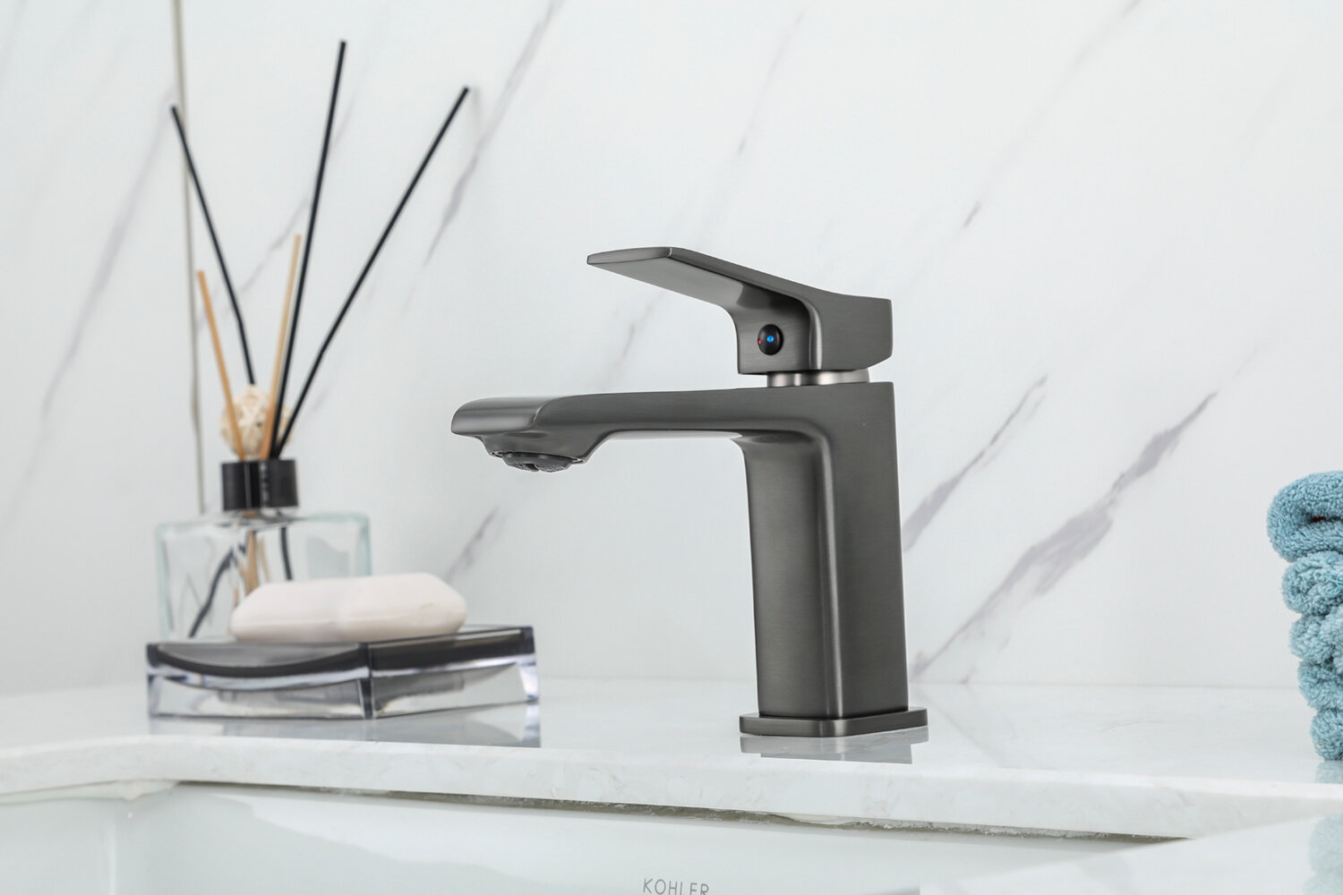 Смеситель для раковины FRAP F1084-9 оружейная сталь, однорычажный, короткий литой излив