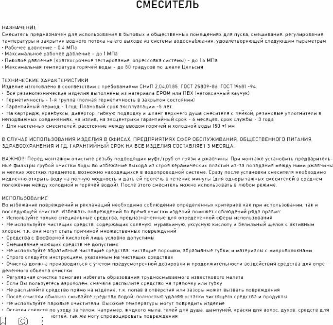 | Комплектация | паспорт, корпус с изливом, пластиковая подводка с латунными штуцерами 1/2, крепеж, набор прокладок. |