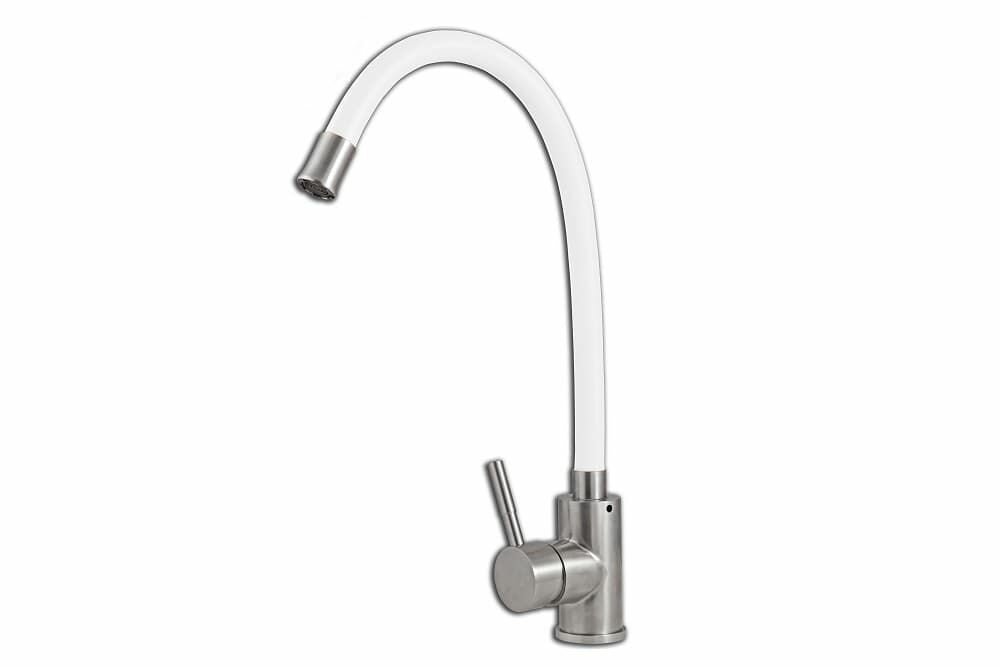 Смеситель для кухни, "Snake" гибкий излив белый, нерж., арт. K44 W