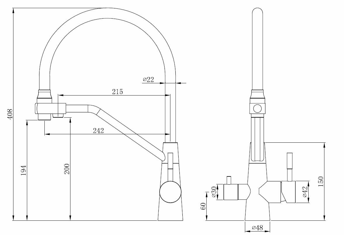 | Излив | выдвижной, гибкий, для фильтрованной воды, поворотный |