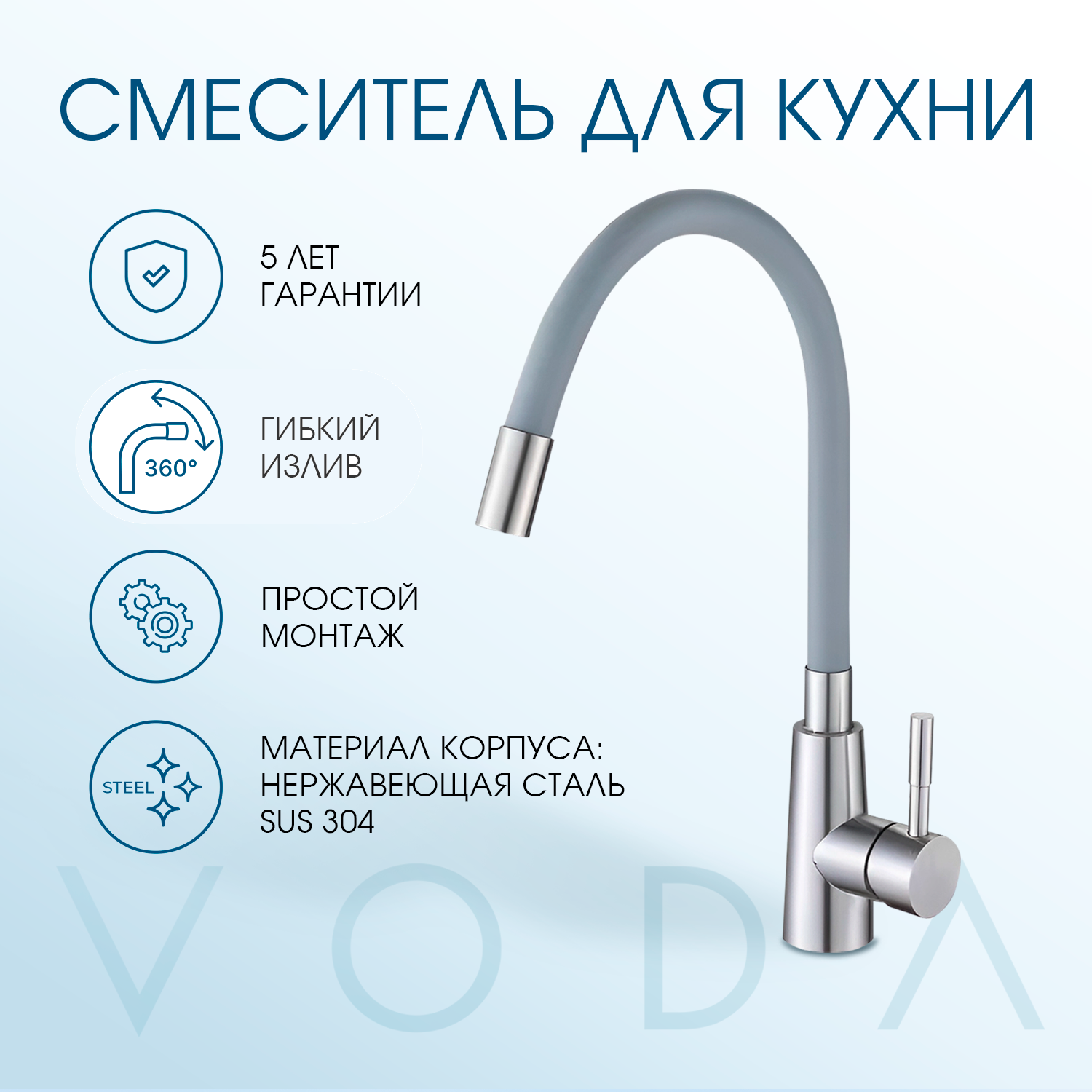 СохранитьСмеситель для кухни с гибким изливом, серый, нержавеющая сталь/для мойки/раковины интересное: