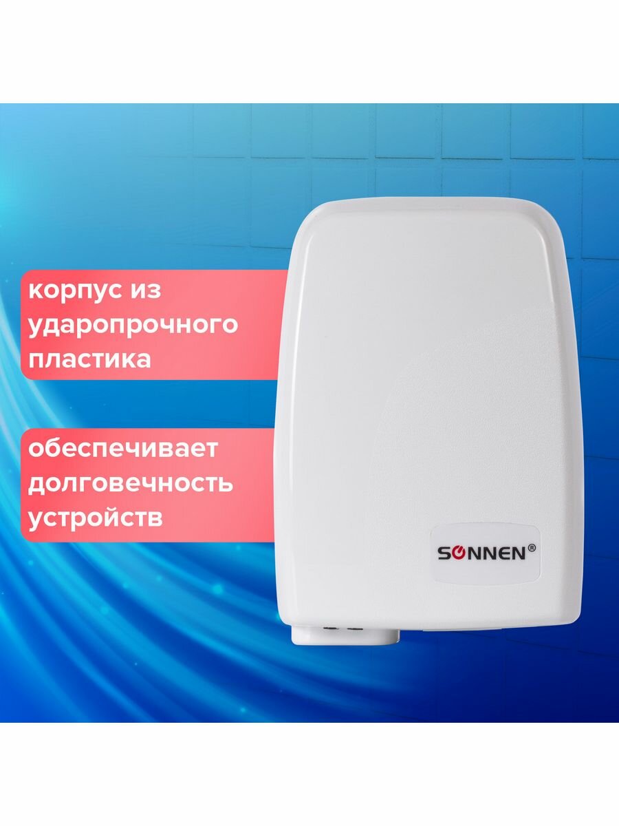 Купить Сушилка для рук SONNEN HD-120, 1000 Вт, пластиковый корпус, белая, 604190