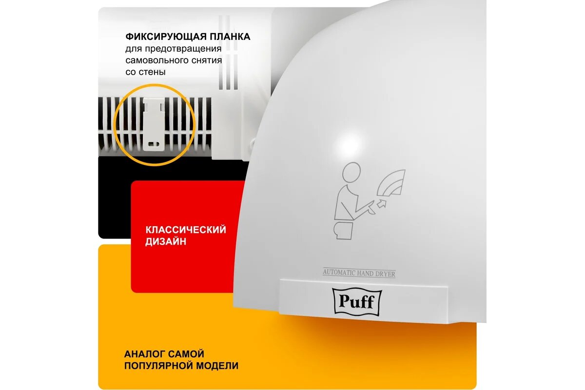 Puff Электросушитель для рук "-8975", высокоскоростной, 1.2 кВт 1401.329 интересное: