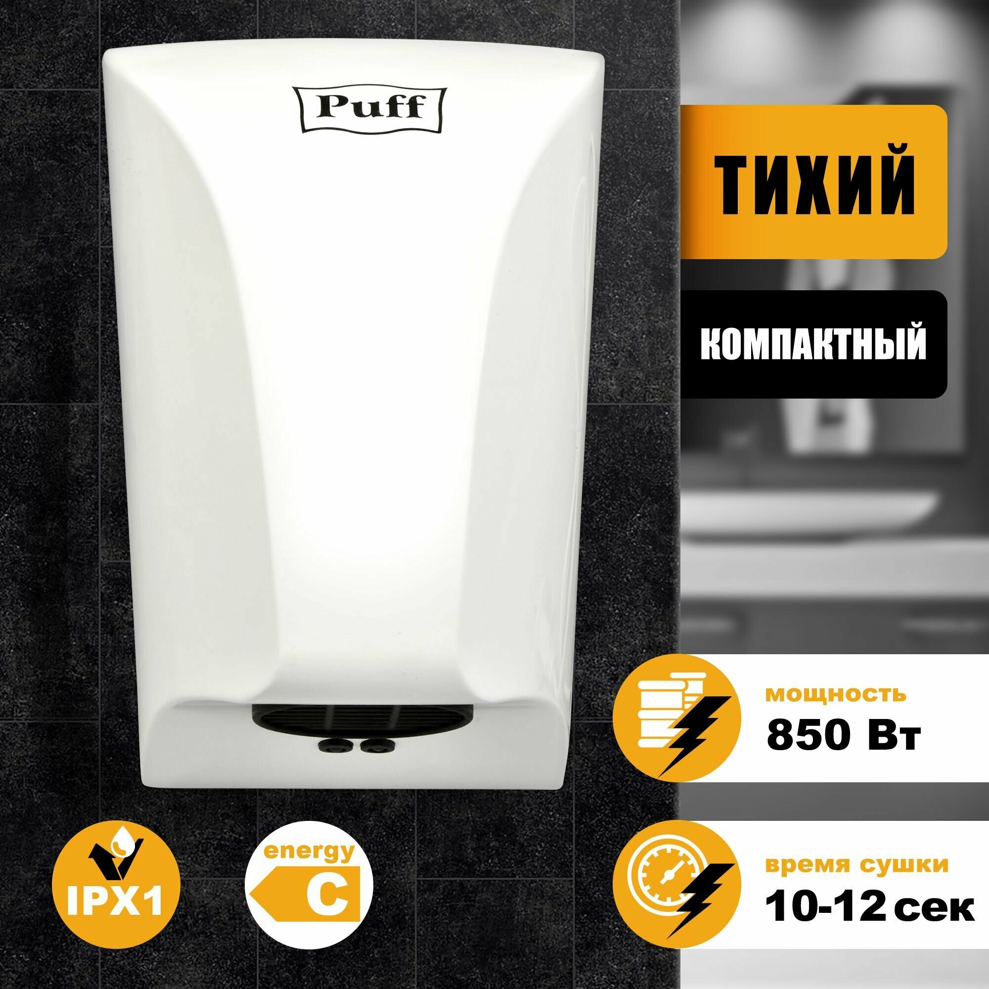 Купить Электросушитель для рук "Puff-8809", белый, 0,85 кВт