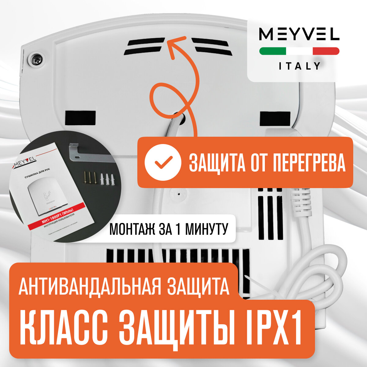 Сушилка для рук Meyvel электрическая высокоскоростная MH1-1800P1 интересное: