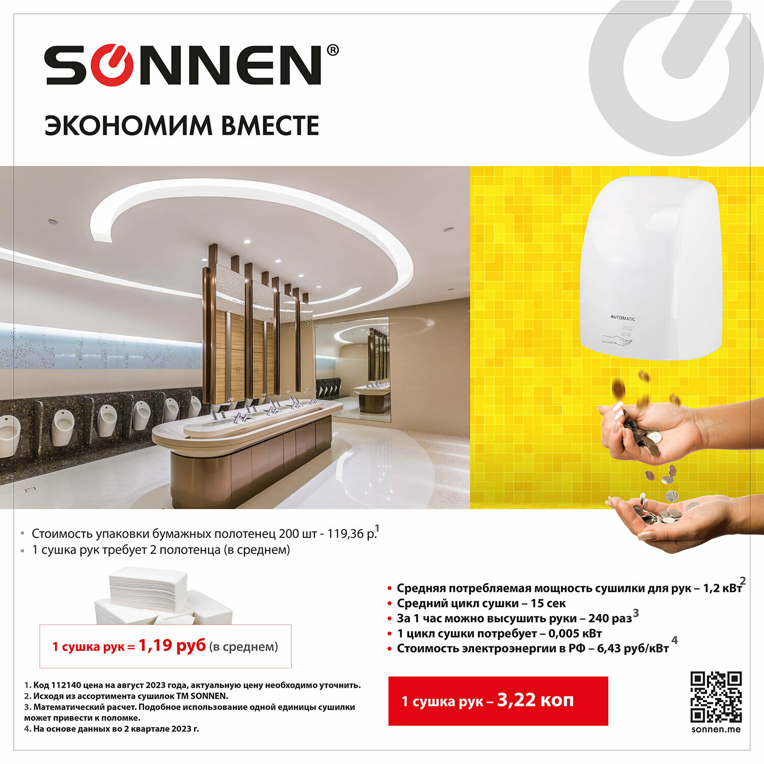 Сушилка высокоскоростная для рук SONNEN HD-FL-2009, 1200 Вт, пластиковый корпус, белая, 607959 интересное: