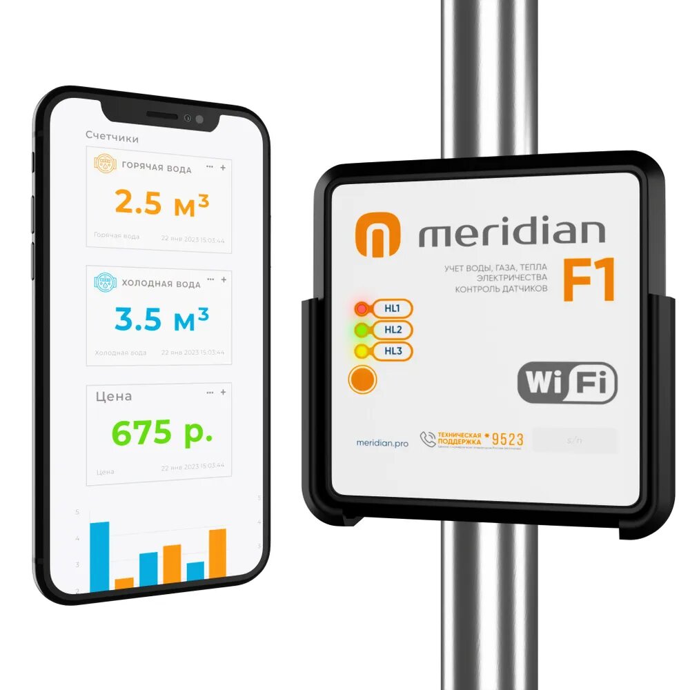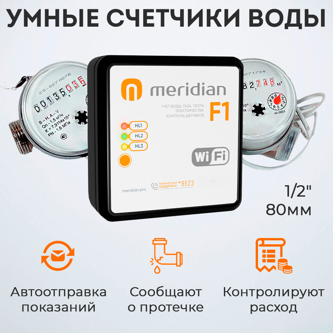 Набор Умные счетчики Meridian для передачи показаний по Wi-Fi (смарт устройство + 2 импульсных счетчика воды 1/2" 80 мм) интересное: