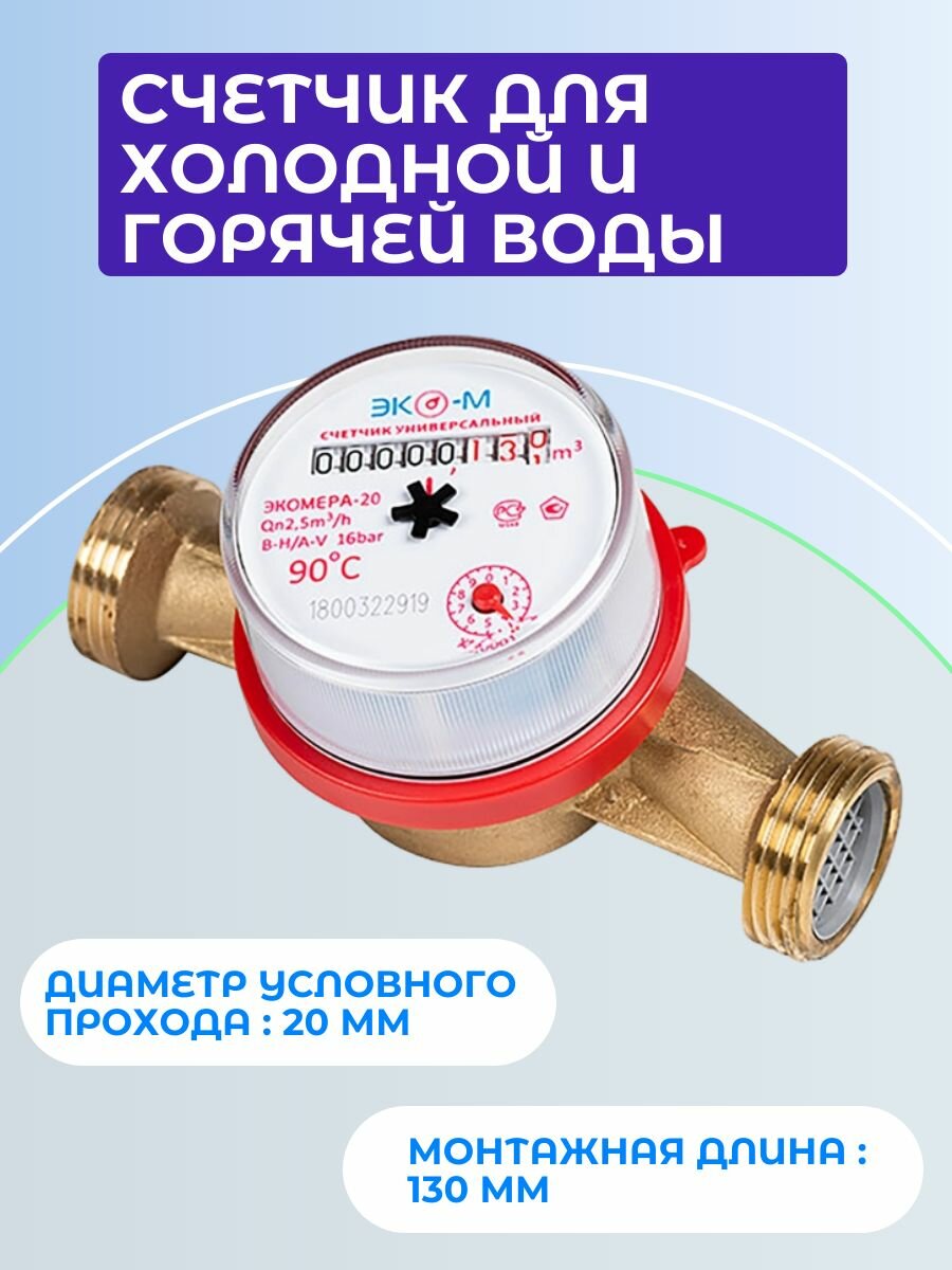 Счетчик для воды, водосчетчик СГВ-20 антимагнитный, монтажная длина 130 мм, с монтажным комплектом интересное:
