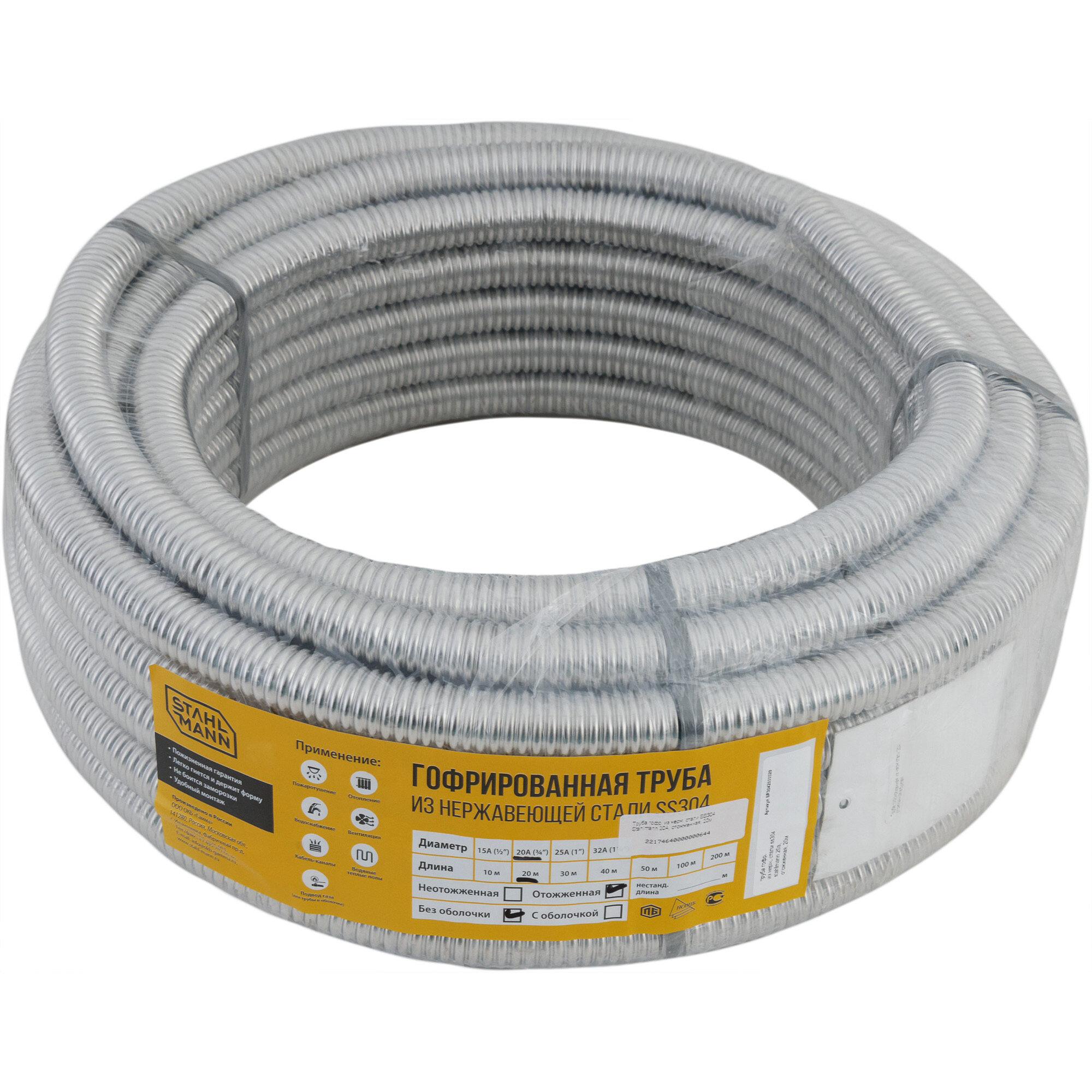 Труба гофрированная из нержавеющей стали Stahlmann ?20 мм отожженная бухта 20м