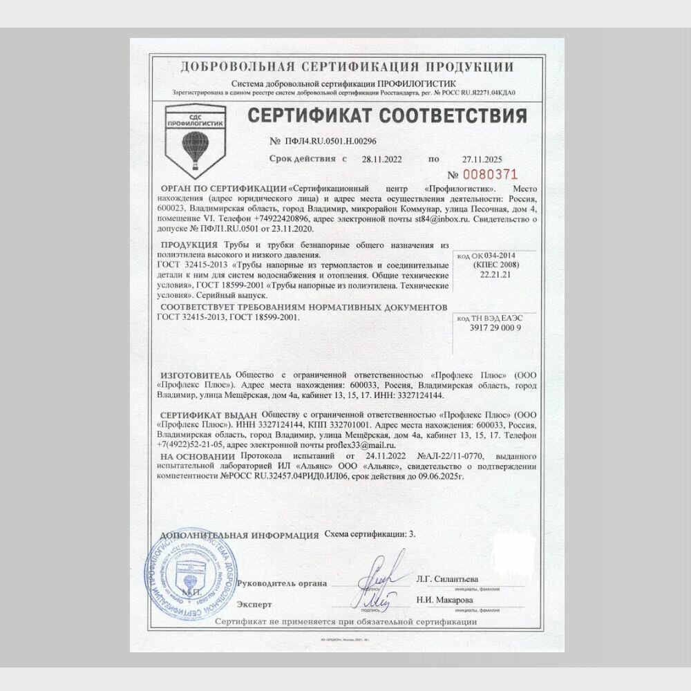 | Материал трубы | полиэтилен |