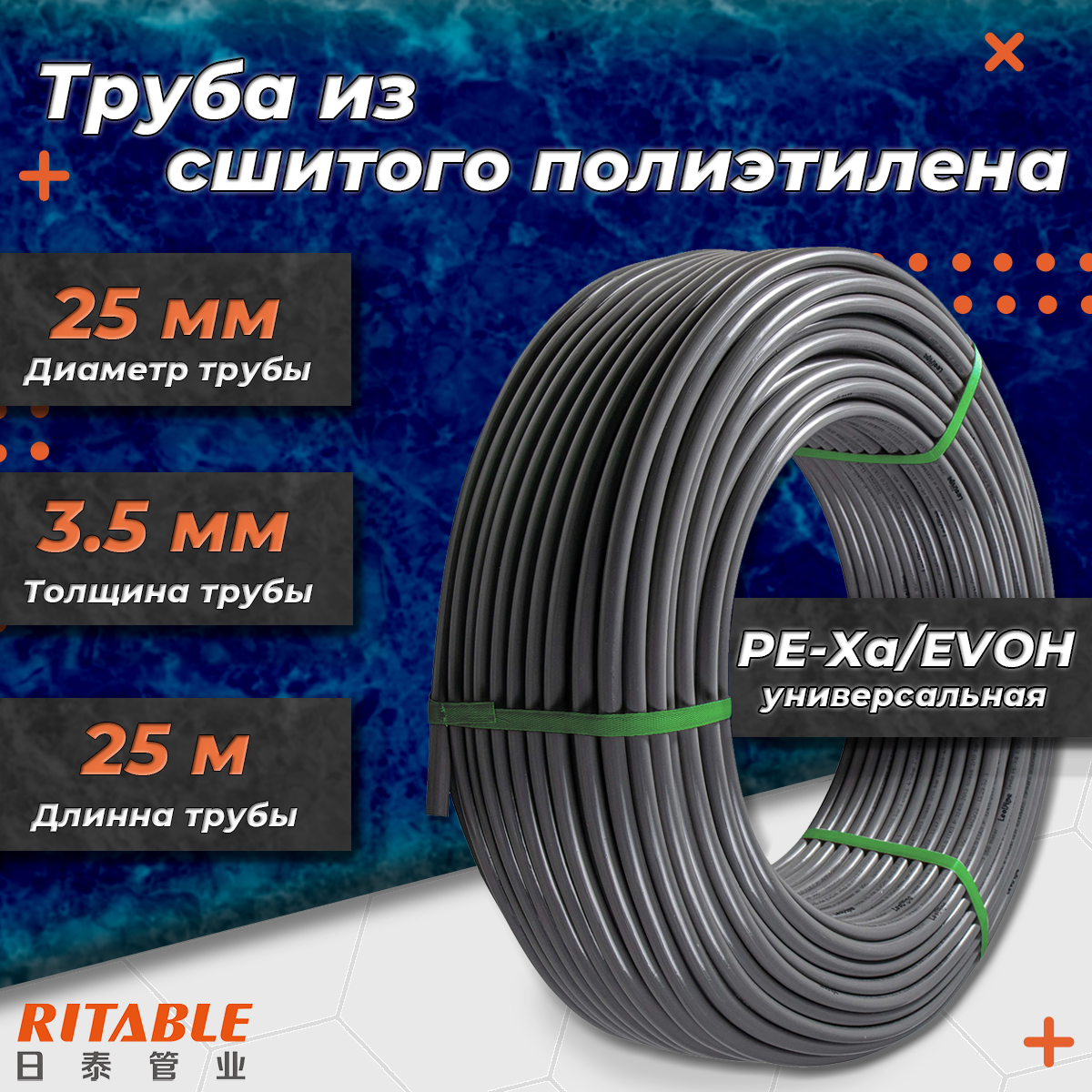 СохранитьТруба из сшитого полиэтилена RITABLE - 25x3,5 (PE-Xa/EVOH, PN10, бухта 25 м, цвет серый) интересное:
