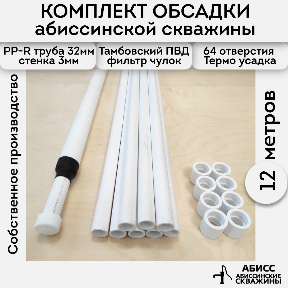 Купить Комплект обсадки 12 м. для абиссинской скважины выполненной гидробурением - фильтр ПВД (чулок) смонтирован на перфорированную трубу ППР 32мм.