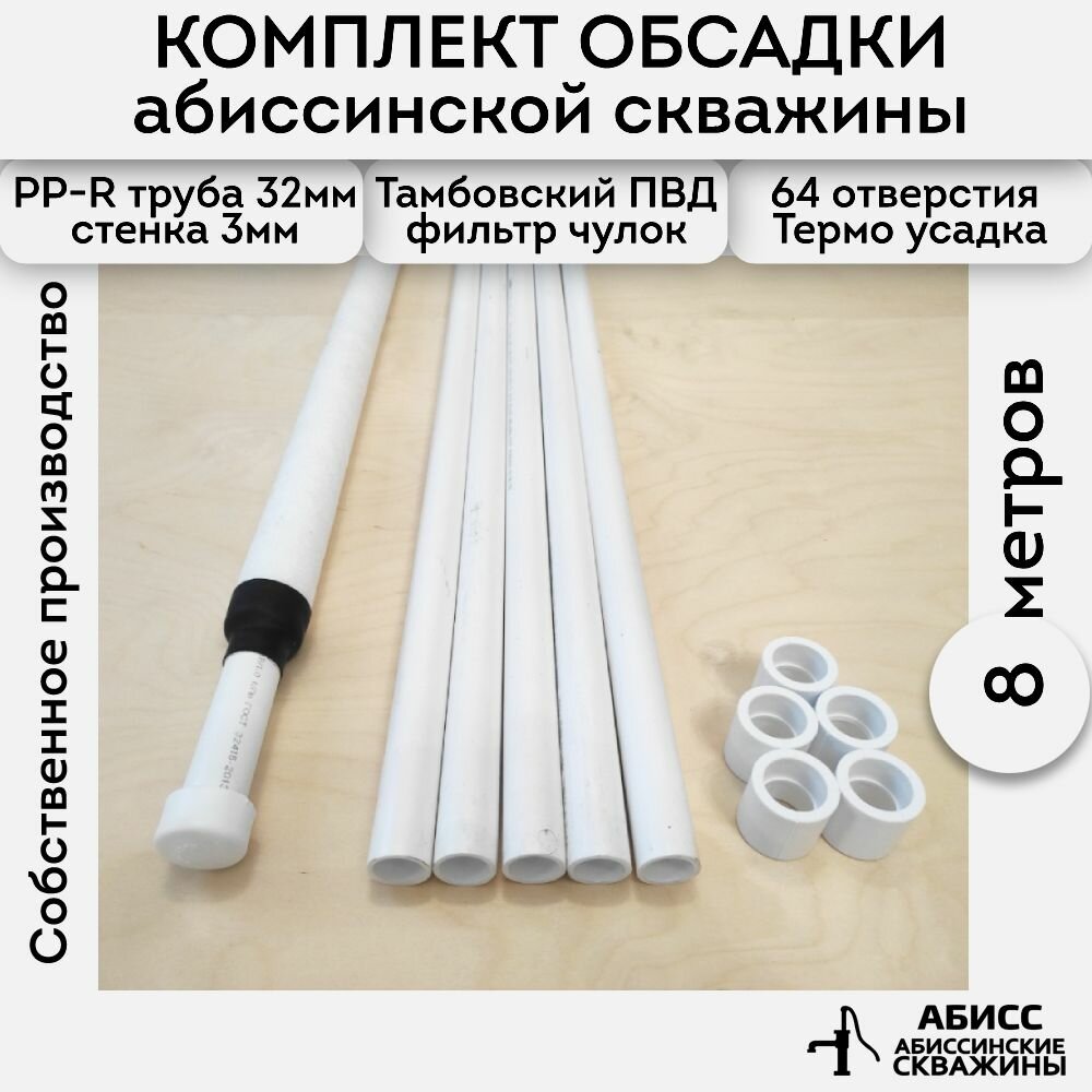 Купить Комплект обсадки 8 м. для абиссинской скважины выполненной гидробурением - фильтр ПВД (чулок) смонтирован на перфорированную трубу ППР 32мм.