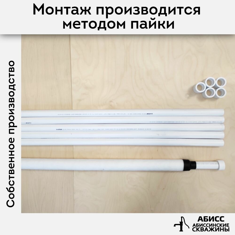 Комплект обсадки 12 м. для абиссинской скважины выполненной гидробурением - фильтр ПВД (чулок) смонтирован на перфорированную трубу ППР 32мм.