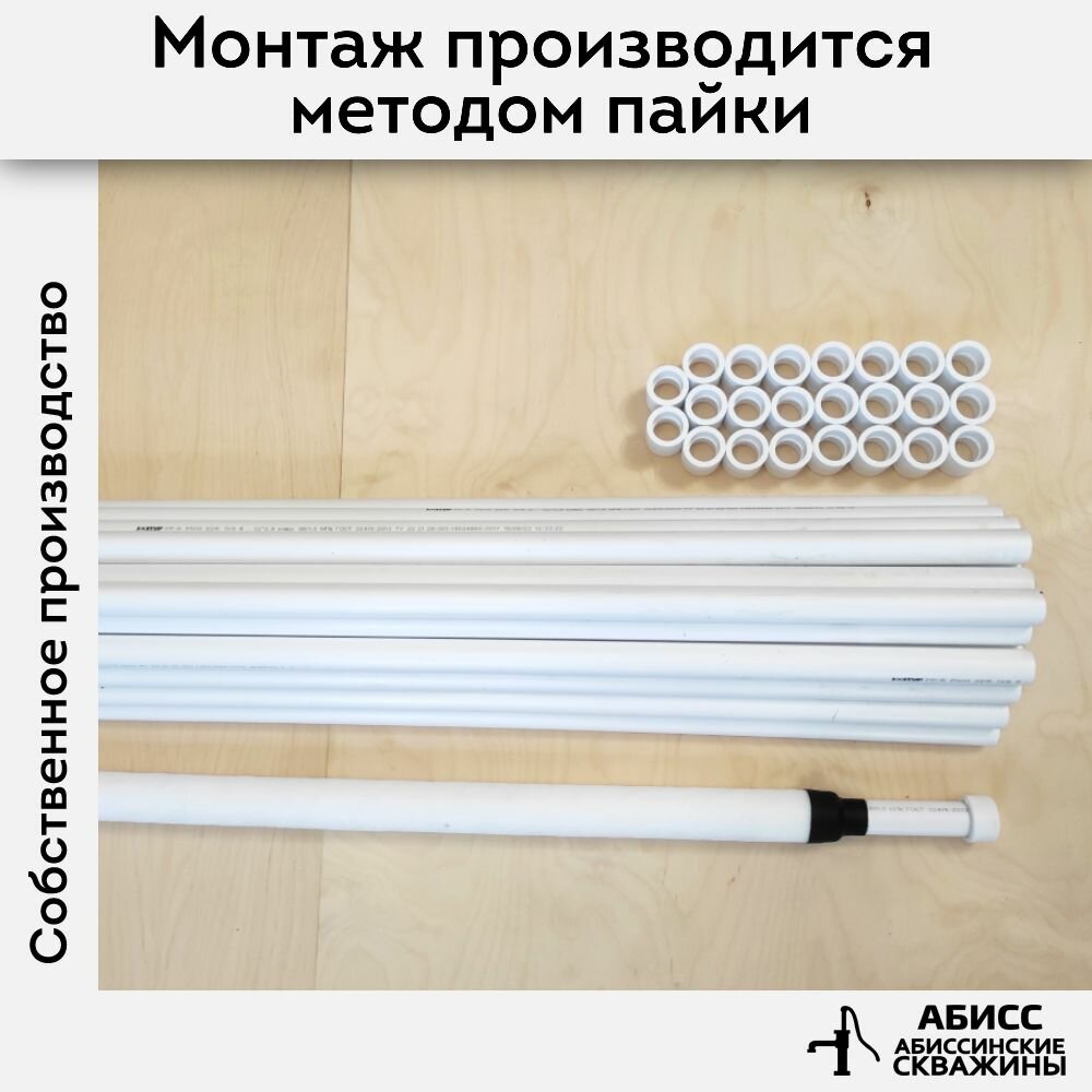 Комплект обсадки 24 м. для абиссинской скважины выполненной гидробурением - фильтр ПВД (чулок) смонтирован на перфорированную трубу ППР 32мм.