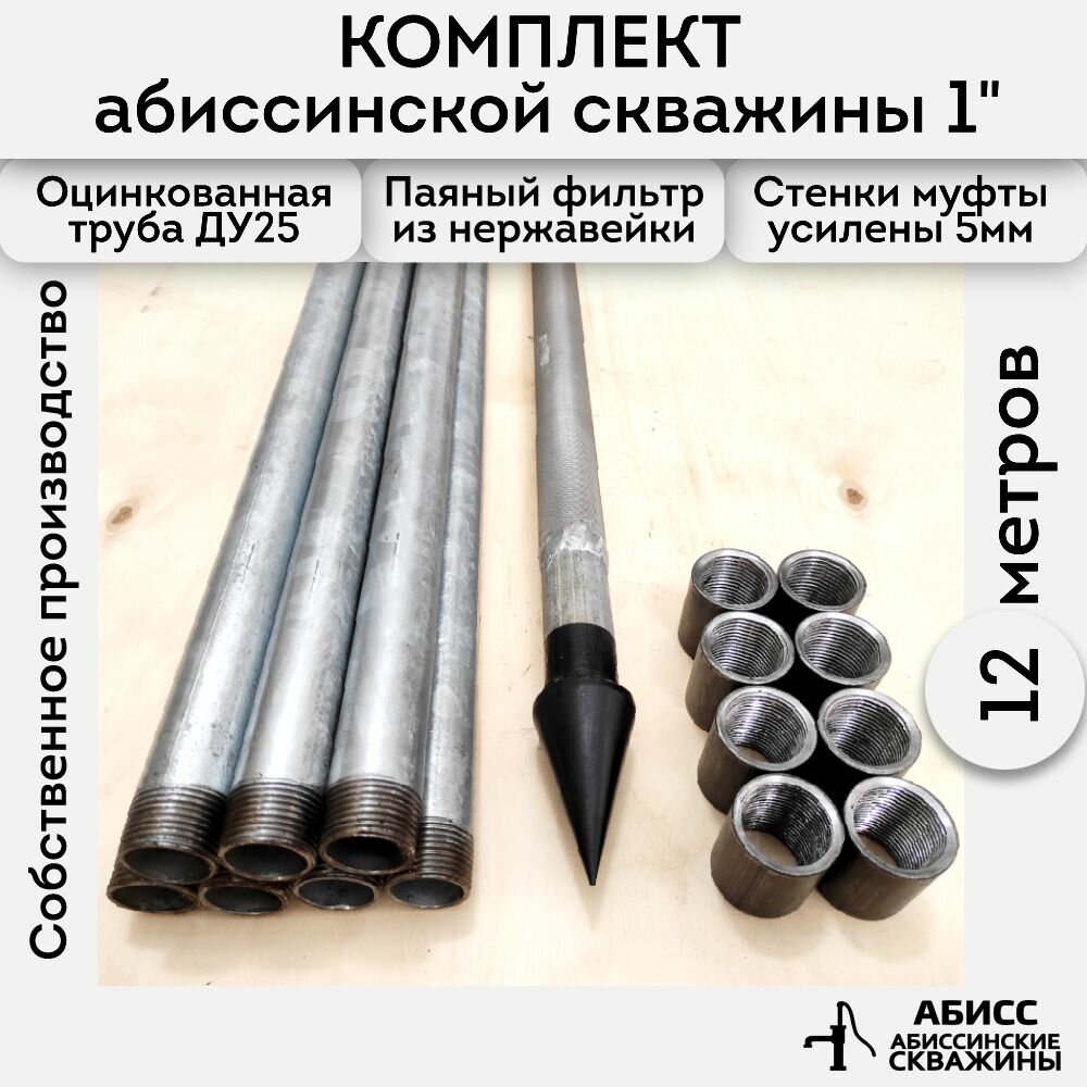 Купить Комплект 12м. для самостоятельной установки абиссинской скважины 1" оцинкованный с паяным фильтром