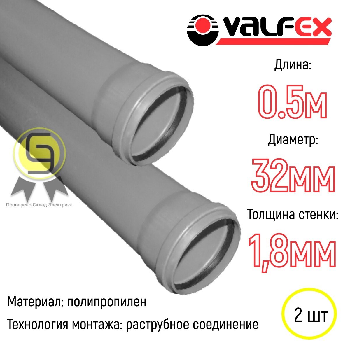 Труба внутренняя канализационная Ф 32 с раструбом длина 0,5 м толщина стенки 1,8мм Valfex Base (комплект из 2шт) интересное: