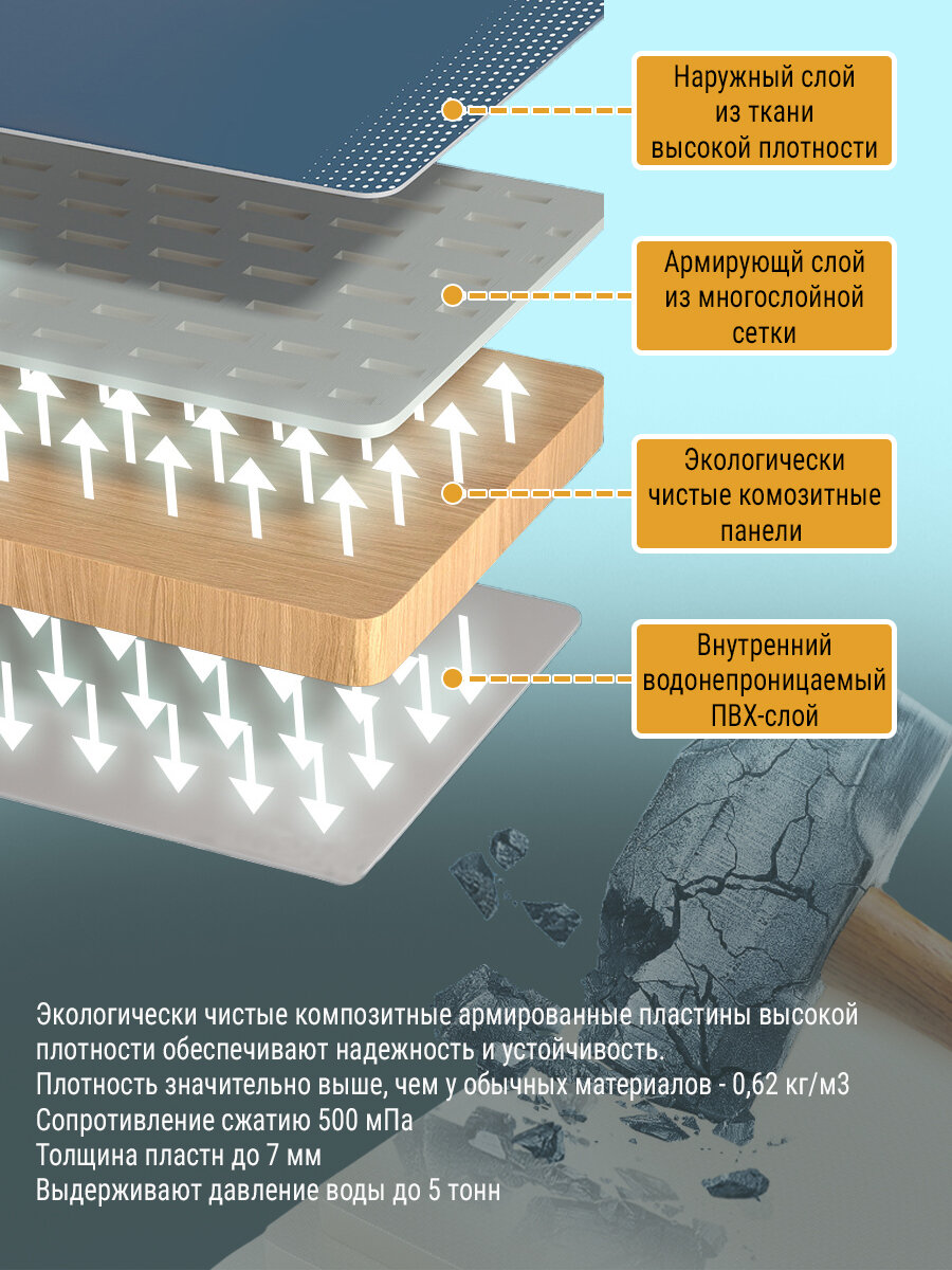 | Подробная комплектация | Утепленная жемчужным хлопком чаша - 1шт; Инструкция на русском языке - 1шт; Гофрированный патрубок - 1шт; Водяная подушка - 1шт; Опорная ножка каркаса - 6 шт; Соединительный тройник каркаса - 6 шт; Угловой элемент каркаса верхнего борика - 4 шт; Горизонтальный элемент каркаса верхнего борика - 2 шт |