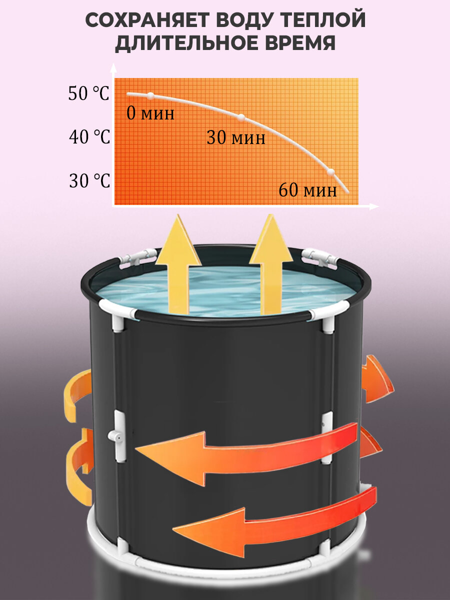 Круглая складная ванна SUN-BUGS, утепленная чаша из ПВХ, синяя, 70см, 250л