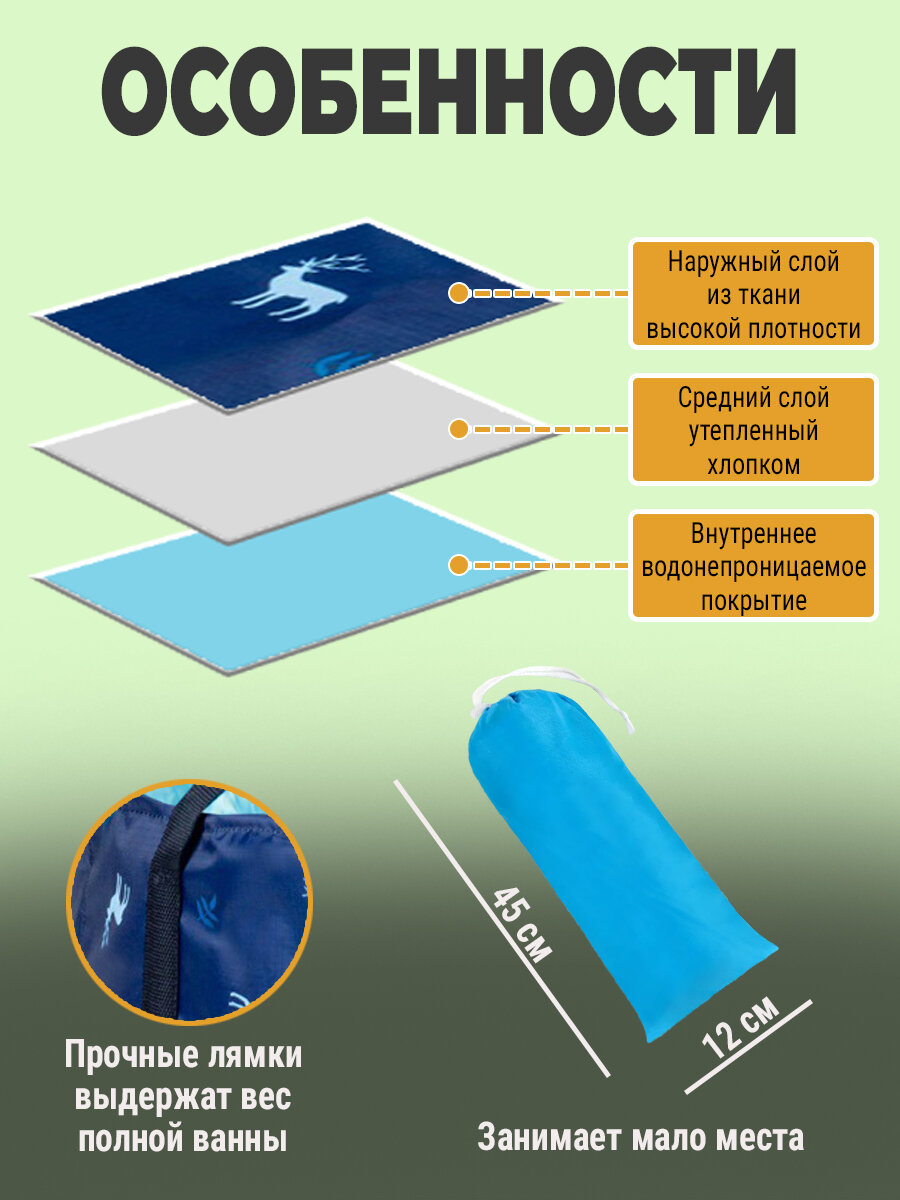 Круглая складная ванна SUN-BUGS, утепленная чаша из ПВХ, синяя, 70см, 250л