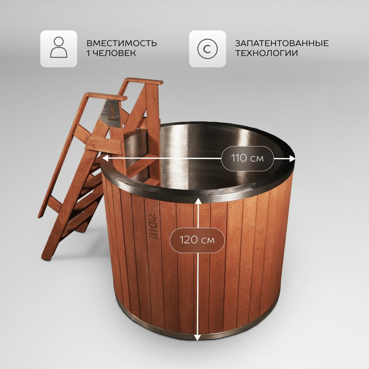 Банный чан Горыныч для 2х-4х человек стандартная лестница купель 1500 литров диаметр 170 см