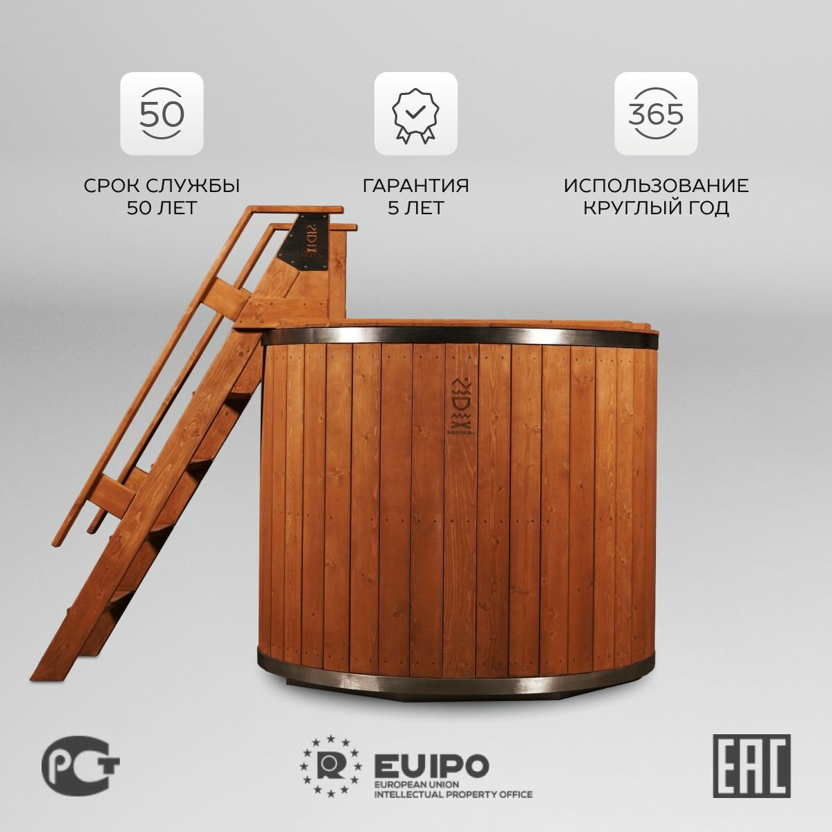 Купель "Сибирская" деревянная с металлической емкостью с лестницей Сибирский Банный Чан