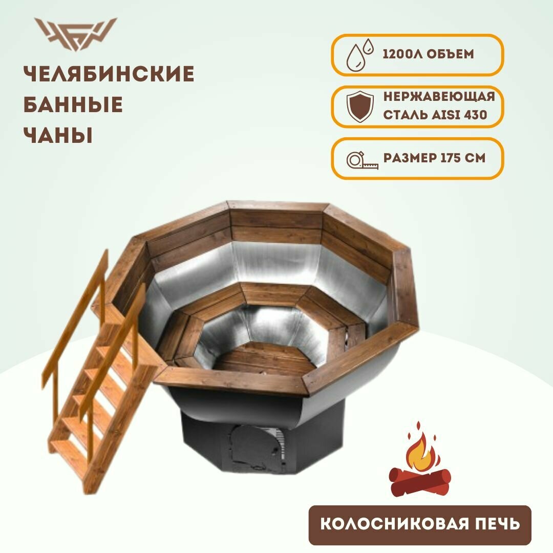 Банный чан Горыныч для 2х-4х человек стандартная лестница купель 1500 литров диаметр 170 см