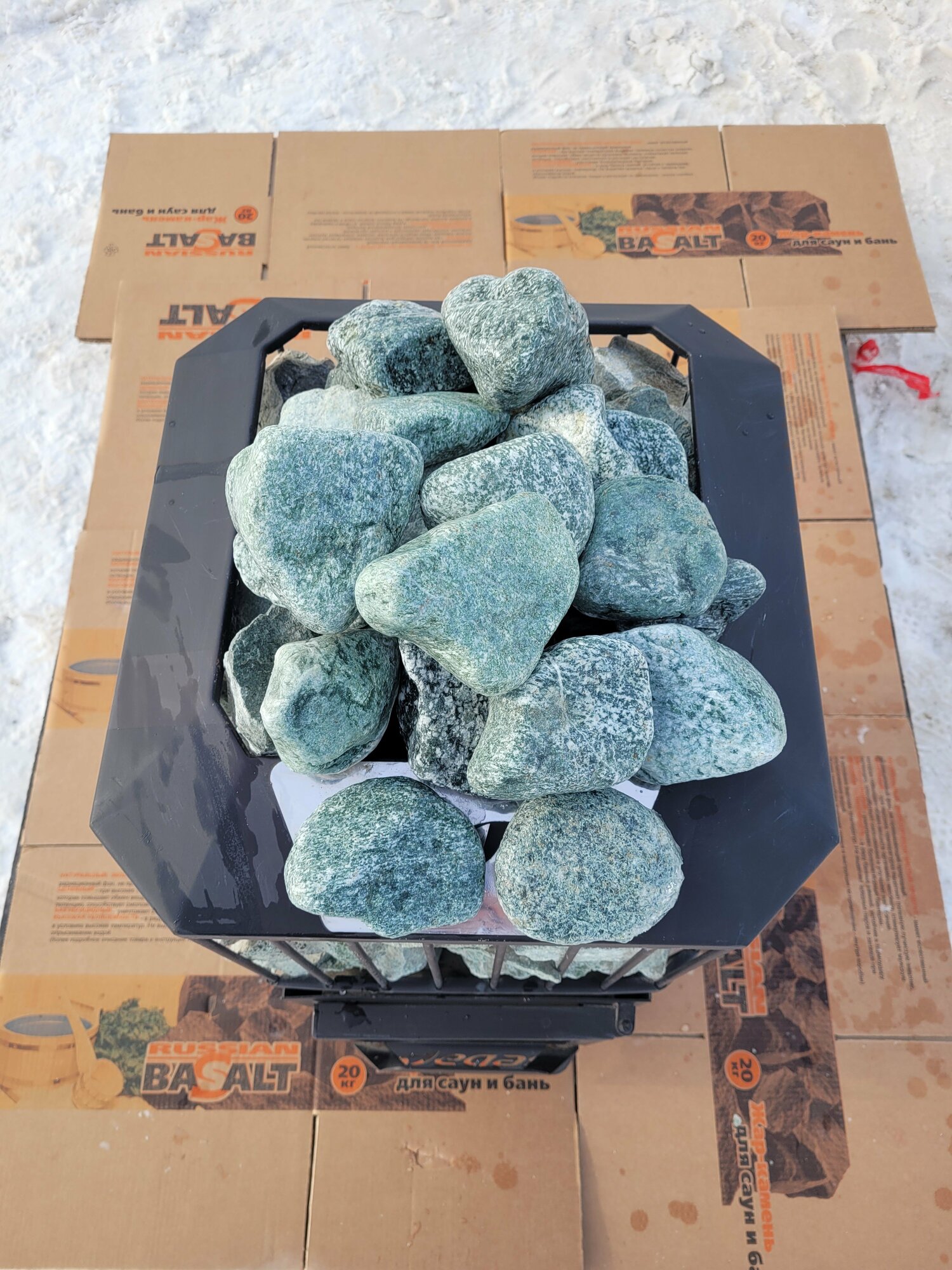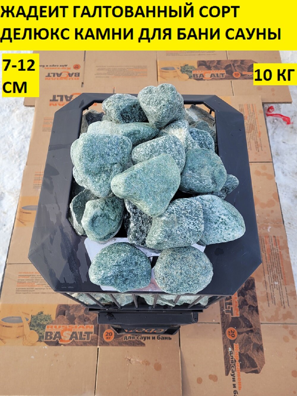 Жадеит галтованный сорт Делюкс размер 7-12 см для печей бани и сауны упаковка 10 кг интересное: