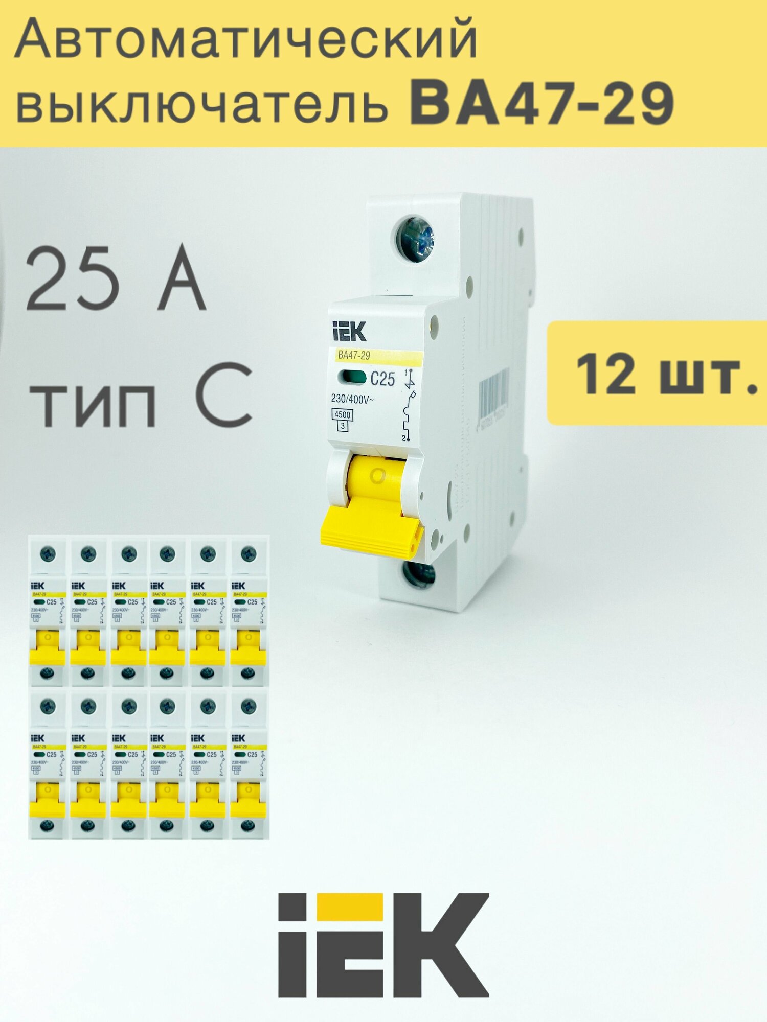 Купить Автоматический выключатель ВА47-29 1P C 25А 4,5кА IEK х 12 шт.