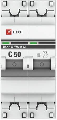 Автоматический выключатель EKF ВА 47-63 PROxima 2P 50А характеристика C (комплект из 2 шт)
