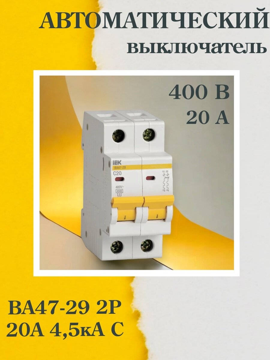 Автоматический выключатель IEK ВА47-29 2Р 20A 4,5кА C