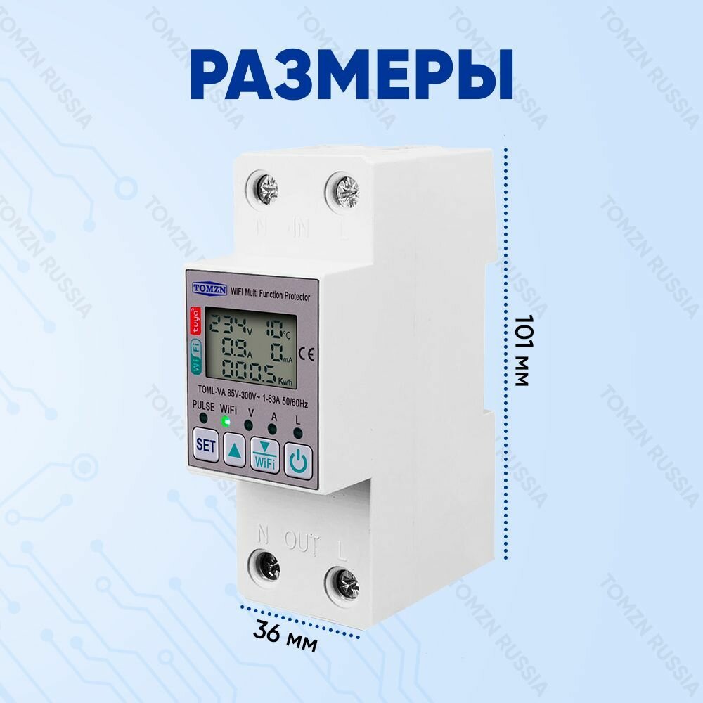 Умный выключатель WiFi TOMZN TOML-VA на DIN рейку с дисплеем / Счётчик электроэнергии, циклический таймер, ограничение по току и напряжению, измеритель температуры и тока утечки / Управление Tuya интересное: