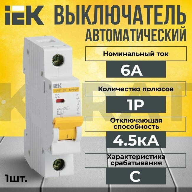Автоматический выключатель IEK ВА47-29 C 6A 4500A