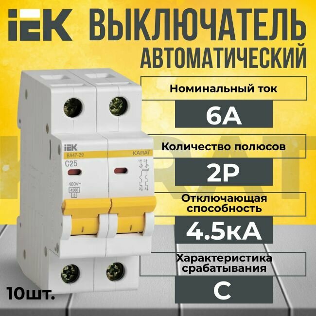 Купить Автоматический выключатель IEK 2P 6А тип С 4,5кА KARAT - 10 шт.