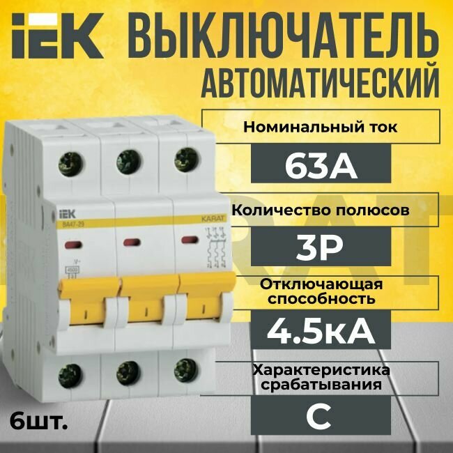 Купить Автоматический выключатель IEK 3P 63А тип C 4,5кА KARAT - 6 шт.