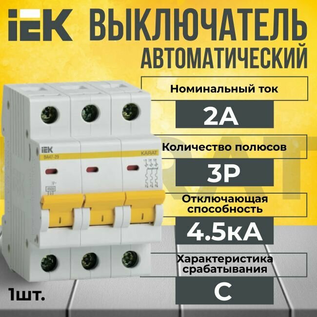 Выключатель автоматический модульный 3п C 2А 4.5кА ВА47-29 KARAT IEK MVA20-3-002-C