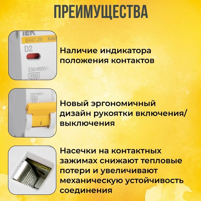 Выключатель автоматический IEK ВА47-29, 3Р, 32 А, 4,5 кА, тип С