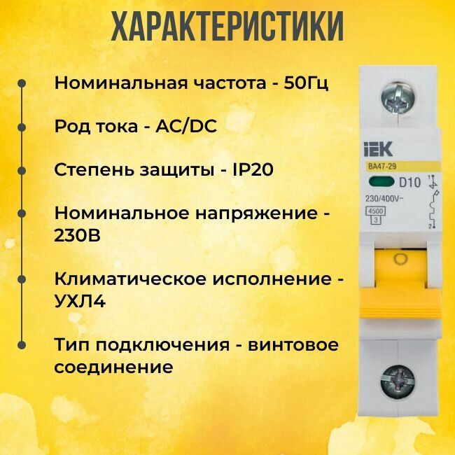 Выключатель IEK автоматический однополюсный 10А C ВА47-29 4.5кА