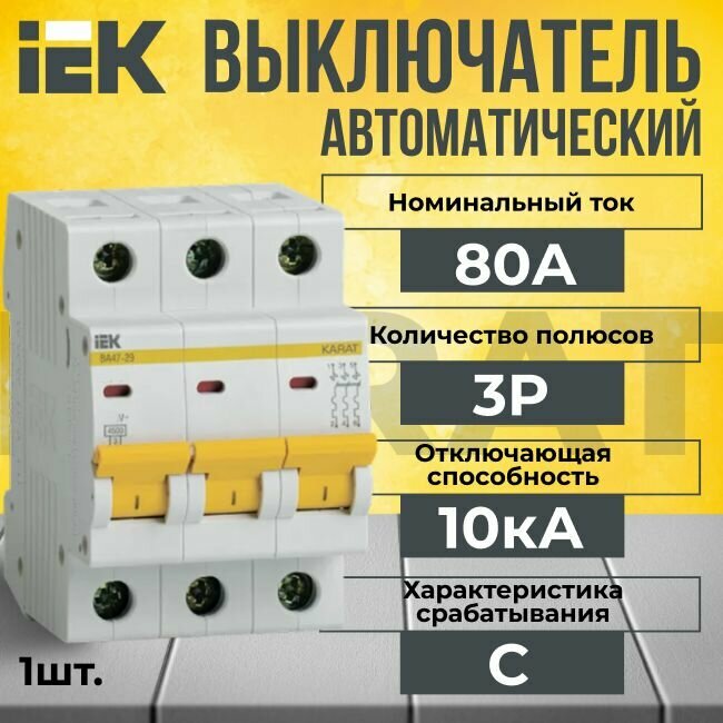 Купить Автоматический выключатель IEK 3P 80А тип С 10кА KARAT - 1 шт.