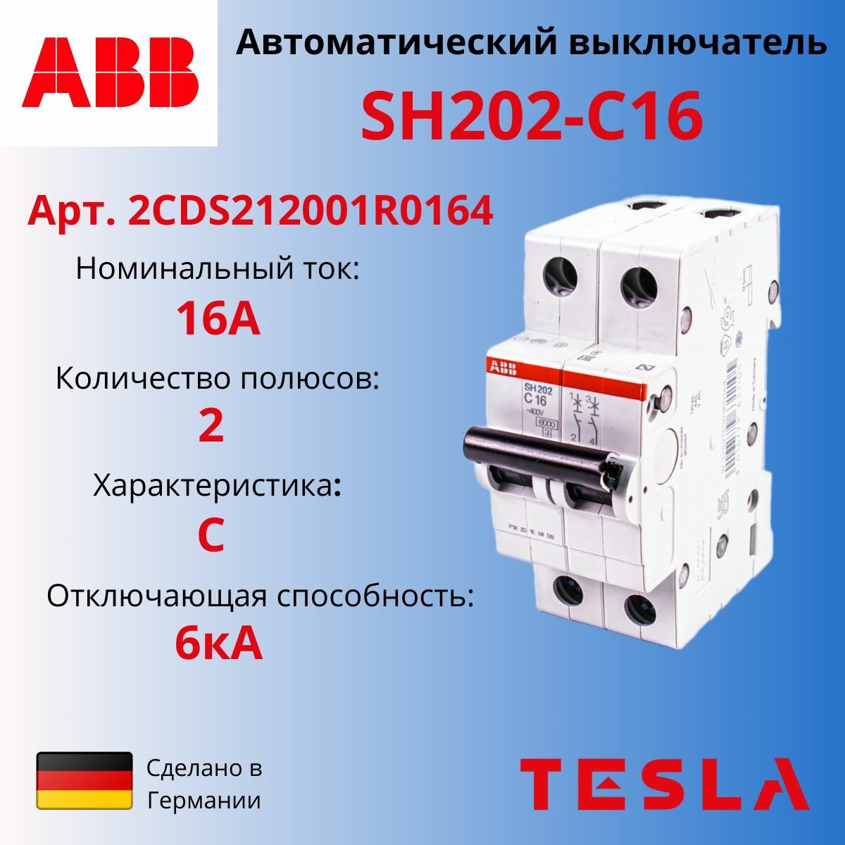 Автоматический выключатель двухполюсной ABB SH202 16А 6кА C 2CDS212001R0164 (комплект из 2шт.)