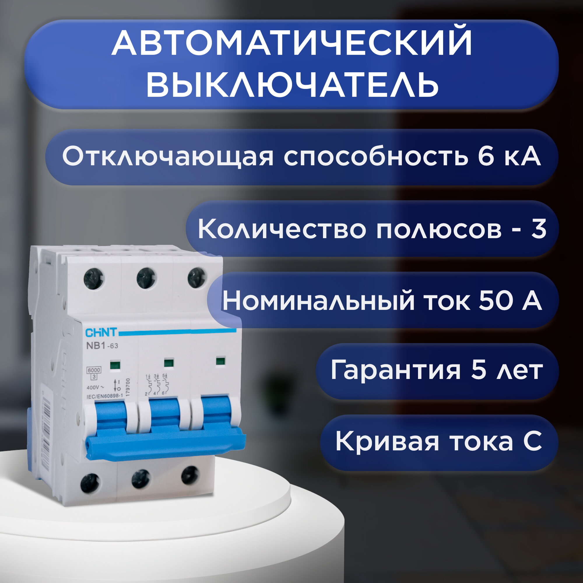 СохранитьВыключатель автоматический 3п C 50А 6кА NB1-63 (R) 179708 CHINT интересное: