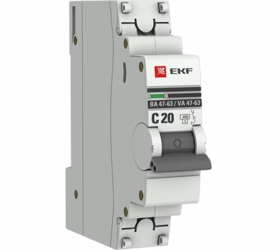 Купить Выключатель автоматический, однополюсный ВА 47-63 1P 20А (С) 4,5kA EKF PROxima (1 шт.) (mcb4763-1-20C-pro)