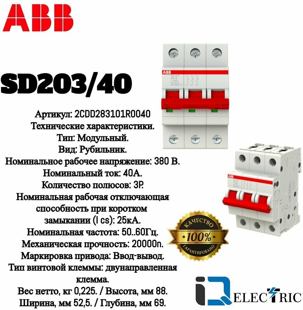 Ниже Вы можете прочитать отзывы на SD203/40 Рубильник 3-полюсный модульный 40А (красный рычаг) ABB, 2CDD283101R0040, ознакомится с подробными характеристиками, посмотреть интересные обзоры и фотографии на SD203/40 Рубильник 3-полюсный модульный 40А (красный рычаг) ABB, 2CDD283101R0040.