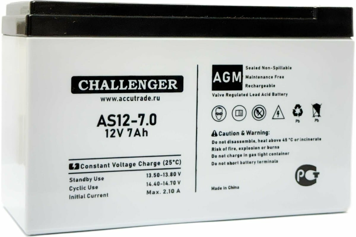 Батарея аккумуляторная 12В, 7Ач CHALLENGER AS12-7.0 интересное: